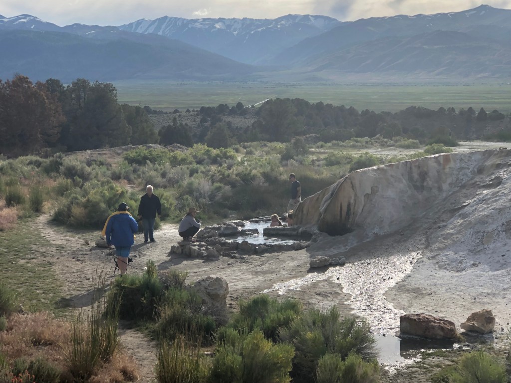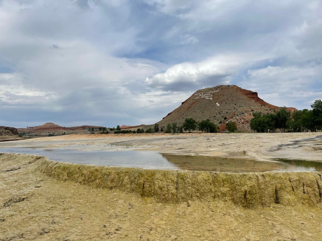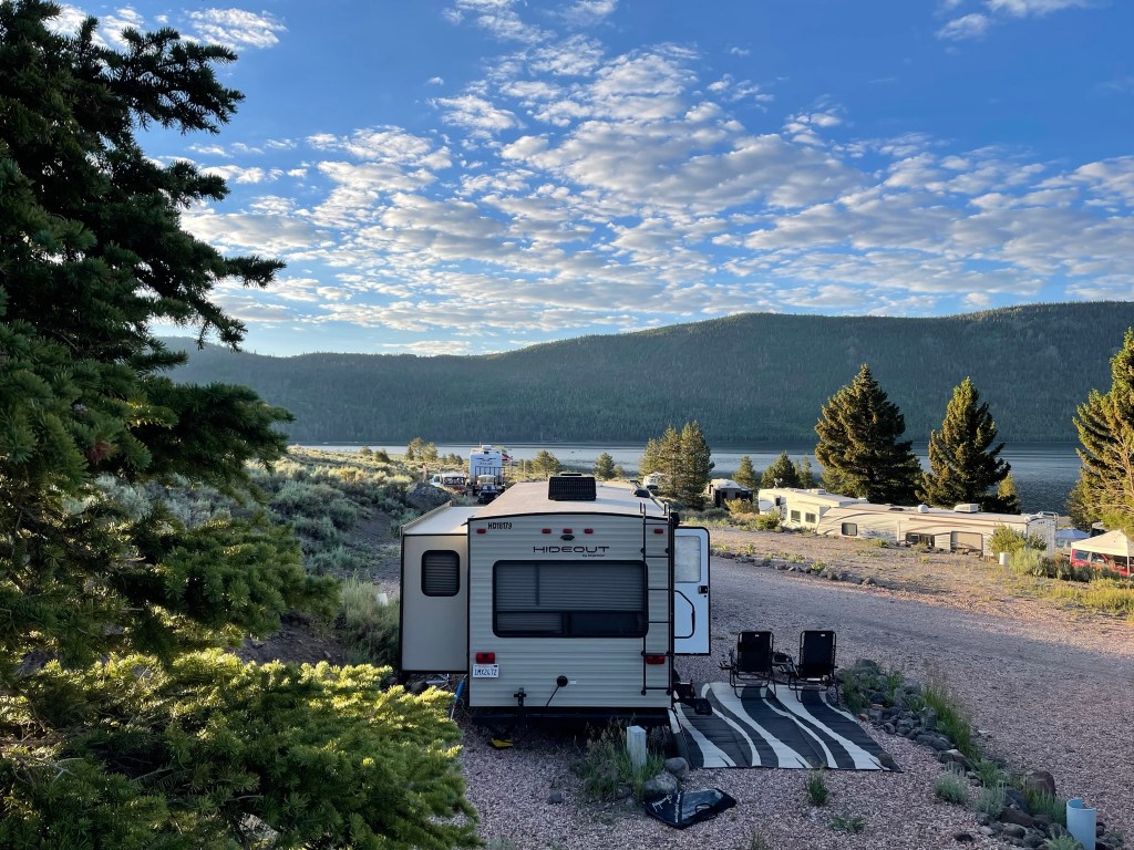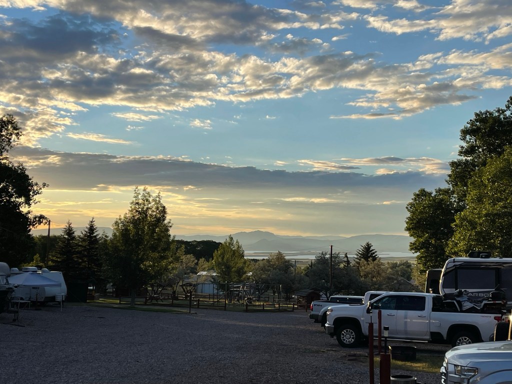 After driving 762 miles and the electric fixed, we set up our camping chairs, cracked open some wine and enjoyed the view from site 52. Facing south, we could see the north end of the Great Salt Lake to our right and the mountains to our left. The after effects of the crazy rainy winter, in not only the western United States, but all over the country, is the fact that all the rivers and lakes were either full or close to it. The Great Salt Lake was no exception. Before 2023, the photo below would show no water according to a woman working the KOA.