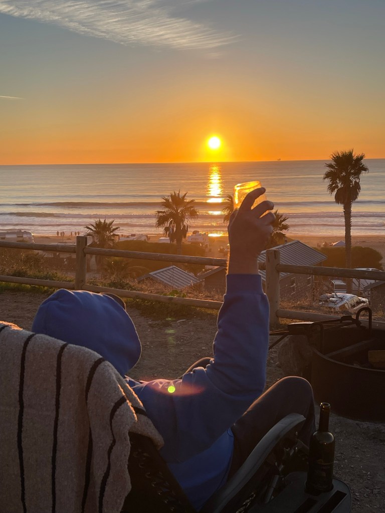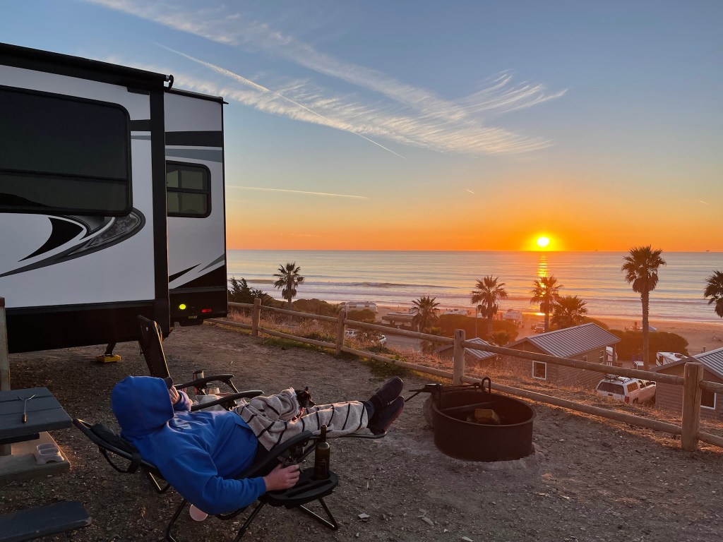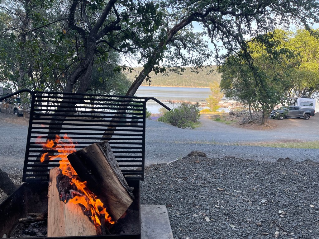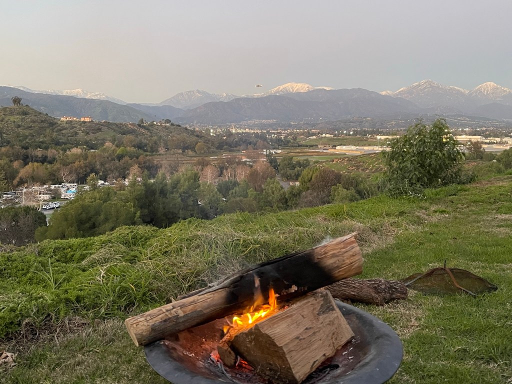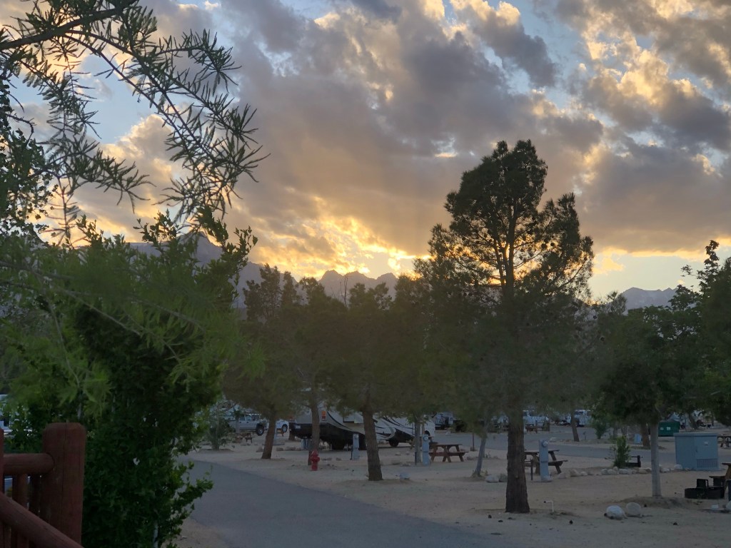 That first night, everybody came over with cocktails and appetizers and we just sat there chit chatting and staring at the tower. Later on in the evening, I tried to start a fire in our portable fire pit and was having trouble. Now, when I asked the people working at the campground if we could have fires they didn’t exactly say no or yes. So, I figured I’d start a fire until somebody shut us down. Luckily, that never happened. Well, after struggling to keep the fire going, a neighbor, 28 year old Katelyn, and her mom who were tent camping nearby saw us having trouble, they walked over and offered to use their Coleman butane blow torch on our fire. Within 2 minutes, the thing was up and blazing away. We invited Katelyn and her mom over for drinks and snacks, and the next thing I knew, we had a little impromptu party of 11 people going on. It was a lot of fun and the best night of the trip. The really cool part was the sky kept changing colors as we partied on.