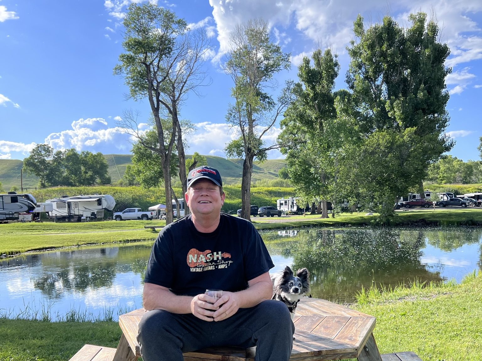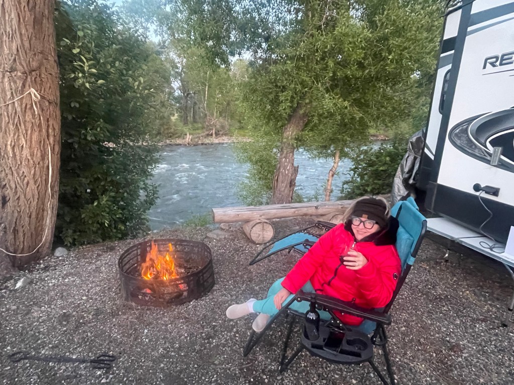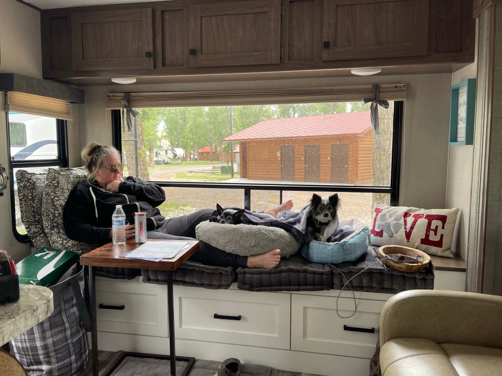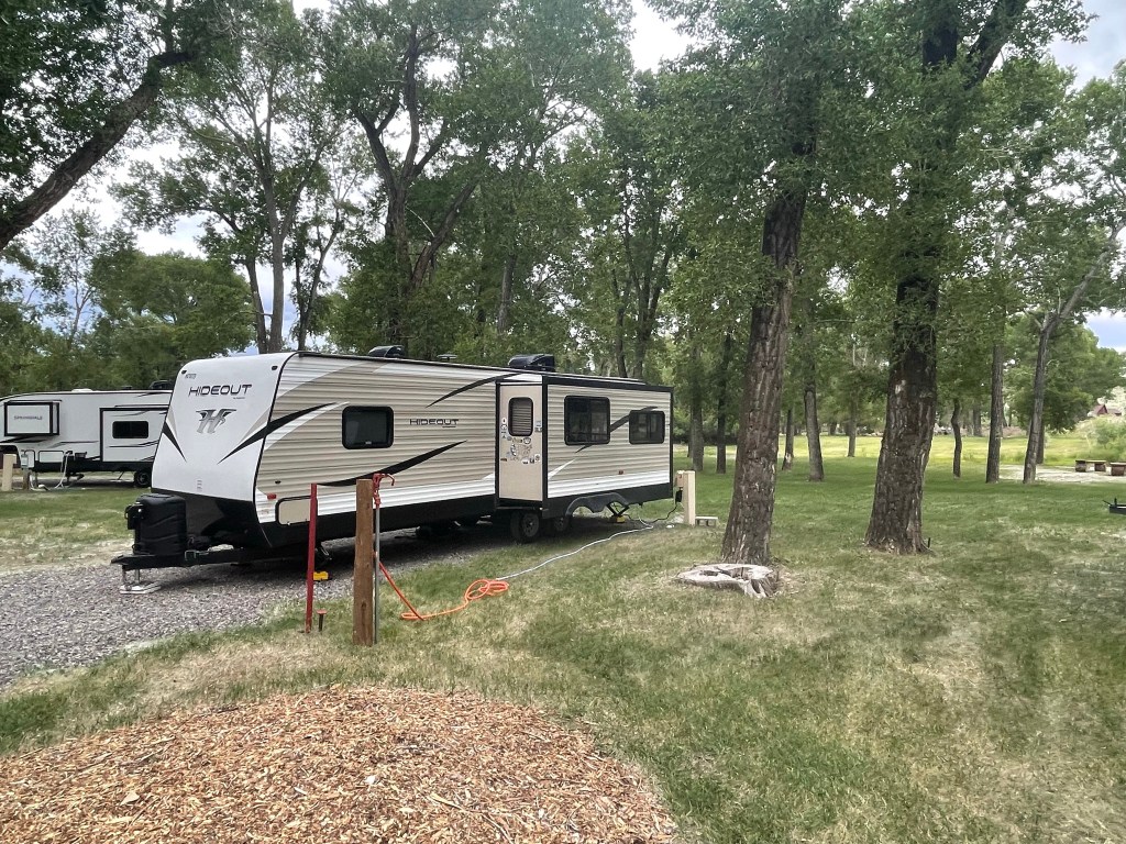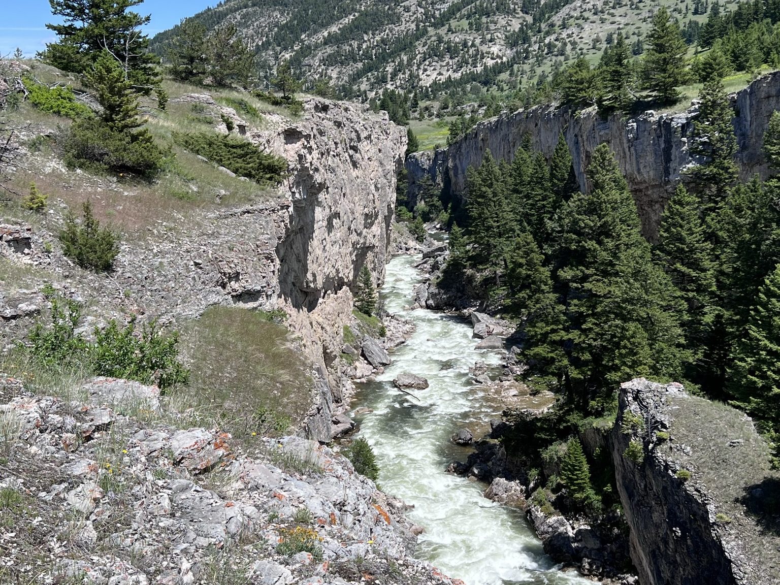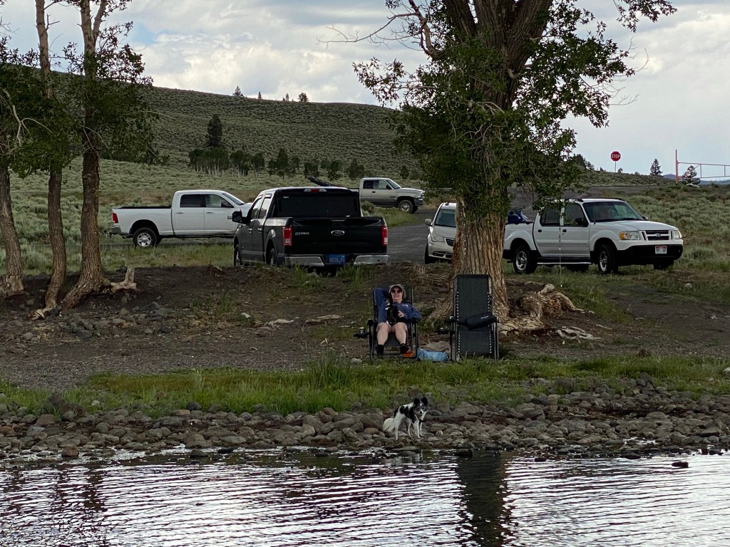 We arrived at Spring Creek CG & Trout Ranch, Montana, Saturday, June 24, at 4 pm. We had site 6 which was right along the Boulder River which ran south to north. Confused as to why they call it “Spring Creek CG” given that the river is called “Boulder”. Weird, but oh well. The town of Big Timber, a small town of 1700 people, is literally in the middle of nowhere and is the halfway point between Bozeman to the west and Billings to the east. The elevation here was 4091, lower elevation than Brigham City, however, we were way more north, so it got a little chilly at night which was perfect. The cool part was the river was literally about 10 feet behind our camper. Also, the river was raging. I’m no expert but I’d guess it was moving at about 15 miles per hour. So, the dogs had to be on a leash at all times because they could easily get swept away especially Kiki, the blind dog.