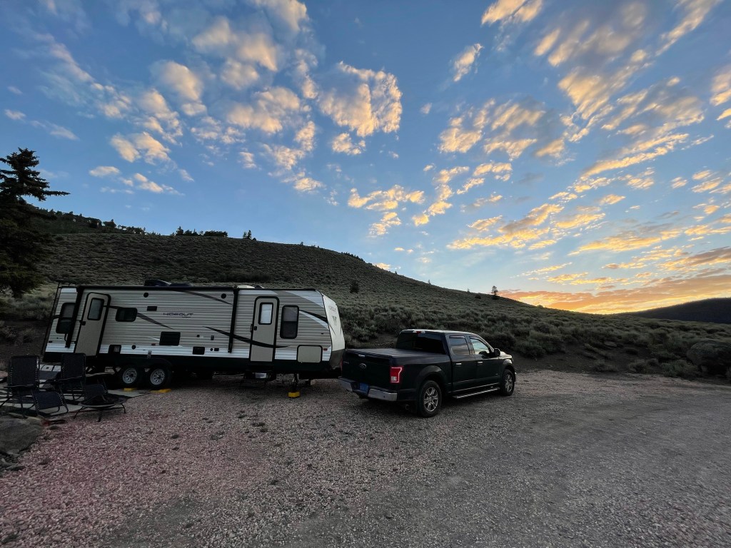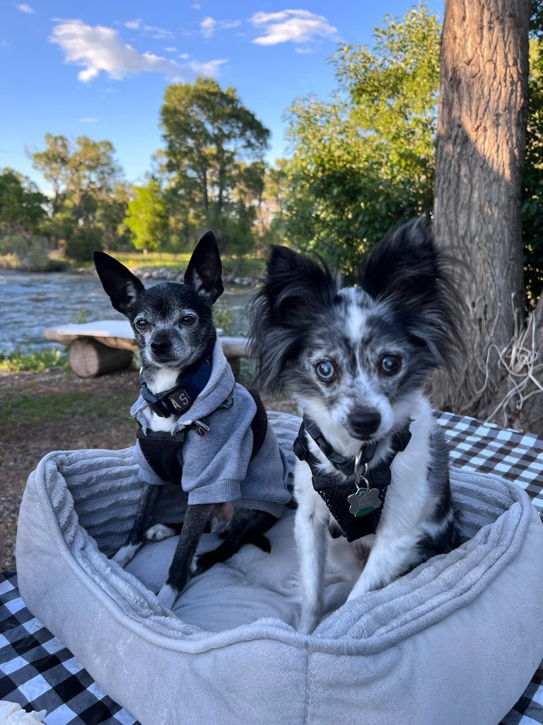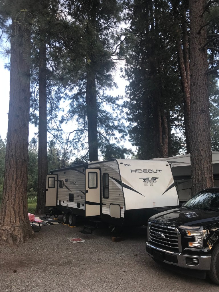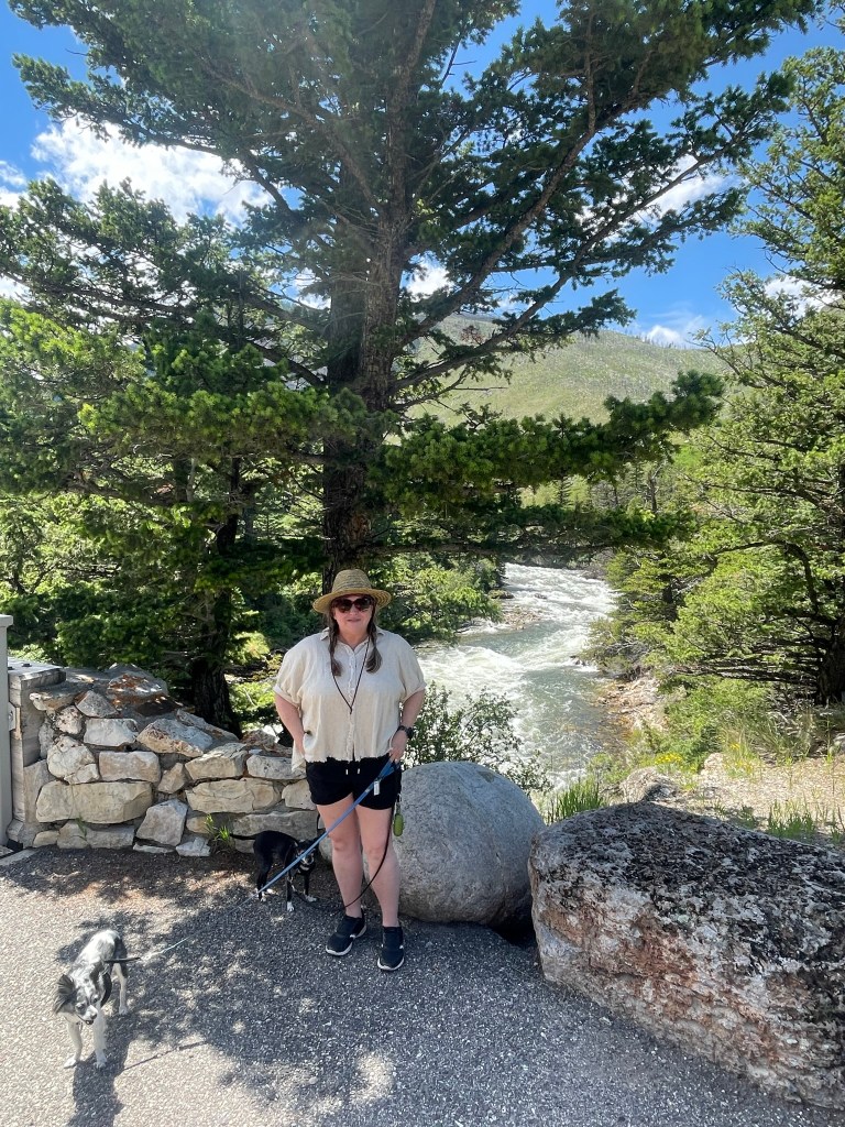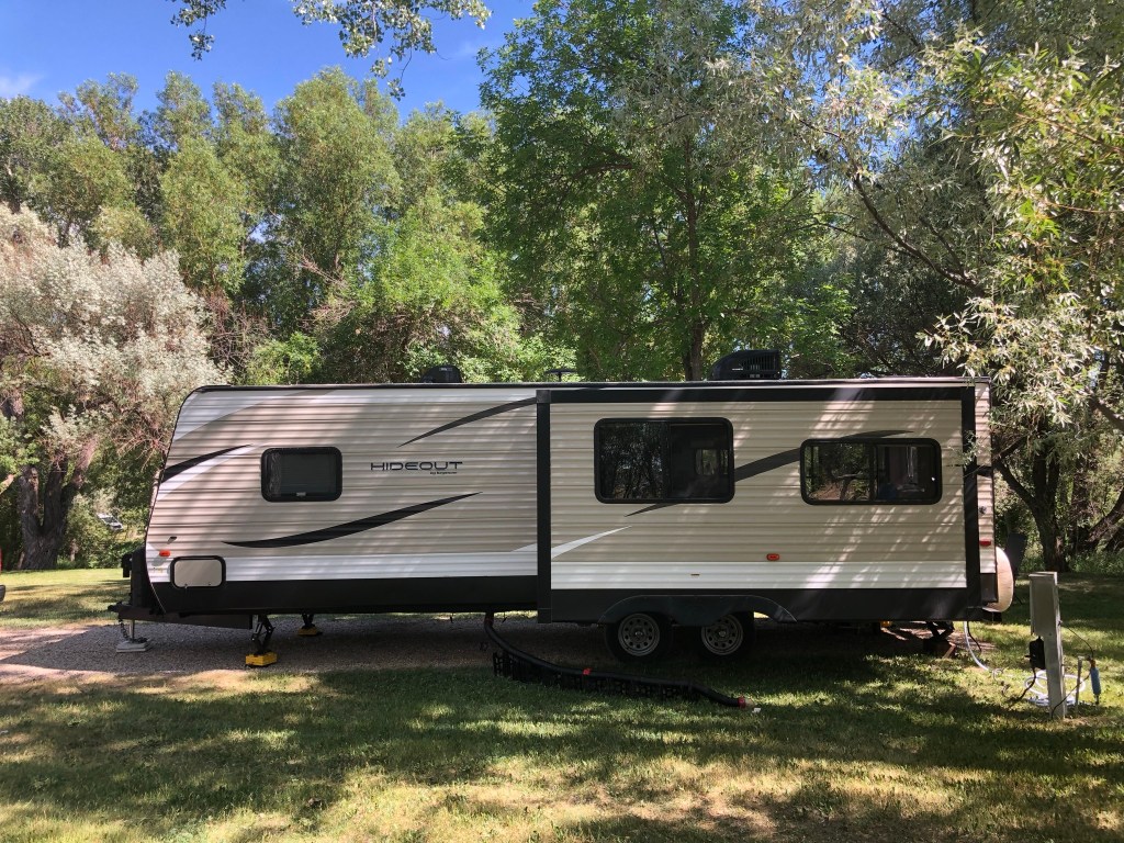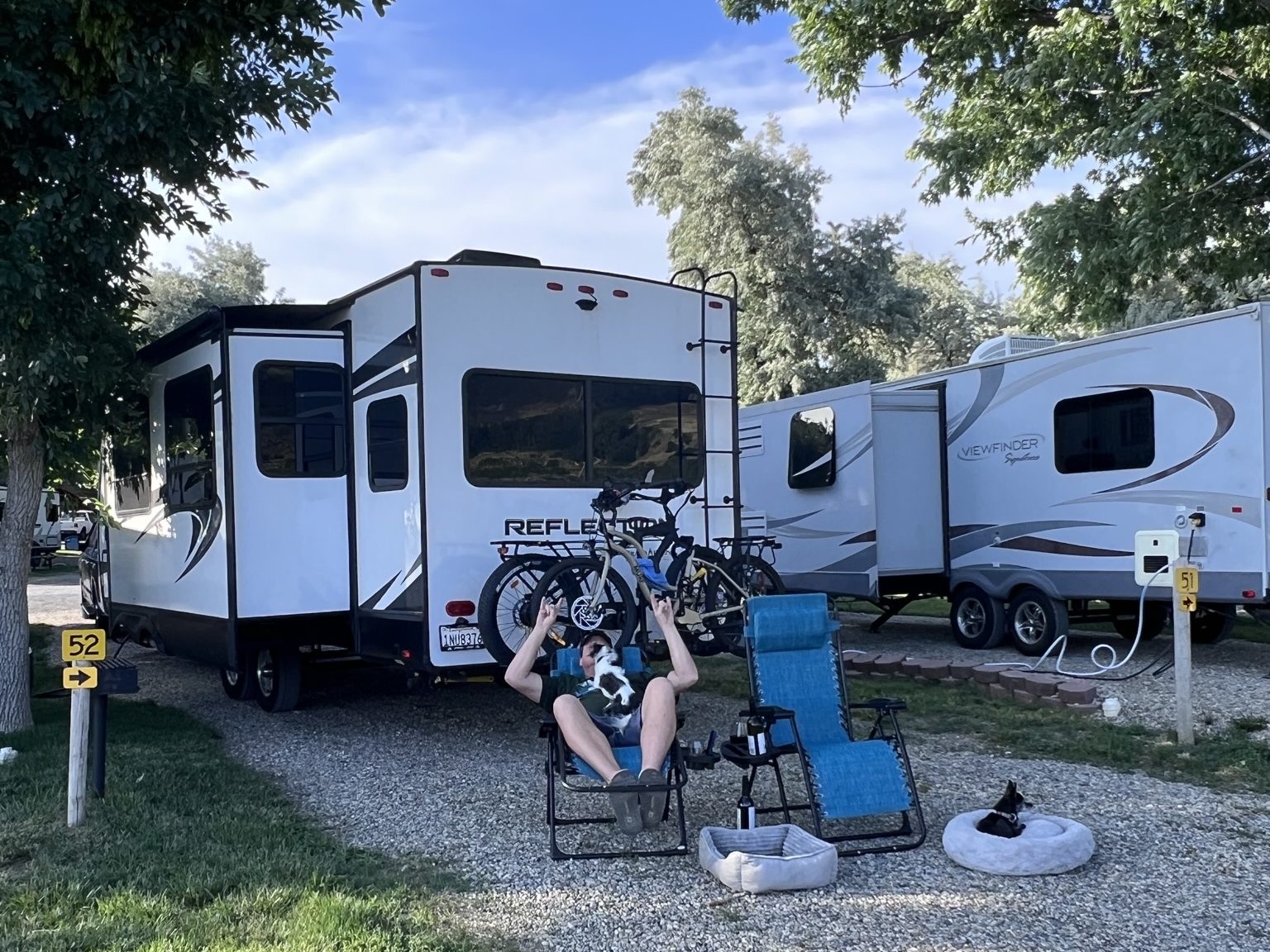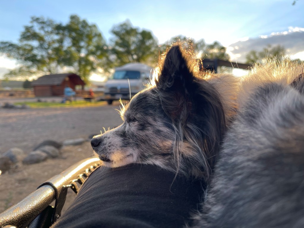 We arrived at Spring Creek CG & Trout Ranch, Montana, Saturday, June 24, at 4 pm. We had site 6 which was right along the Boulder River which ran south to north. Confused as to why they call it “Spring Creek CG” given that the river is called “Boulder”. Weird, but oh well. The town of Big Timber, a small town of 1700 people, is literally in the middle of nowhere and is the halfway point between Bozeman to the west and Billings to the east. The elevation here was 4091, lower elevation than Brigham City, however, we were way more north, so it got a little chilly at night which was perfect. The cool part was the river was literally about 10 feet behind our camper. Also, the river was raging. I’m no expert but I’d guess it was moving at about 15 miles per hour. So, the dogs had to be on a leash at all times because they could easily get swept away especially Kiki, the blind dog.