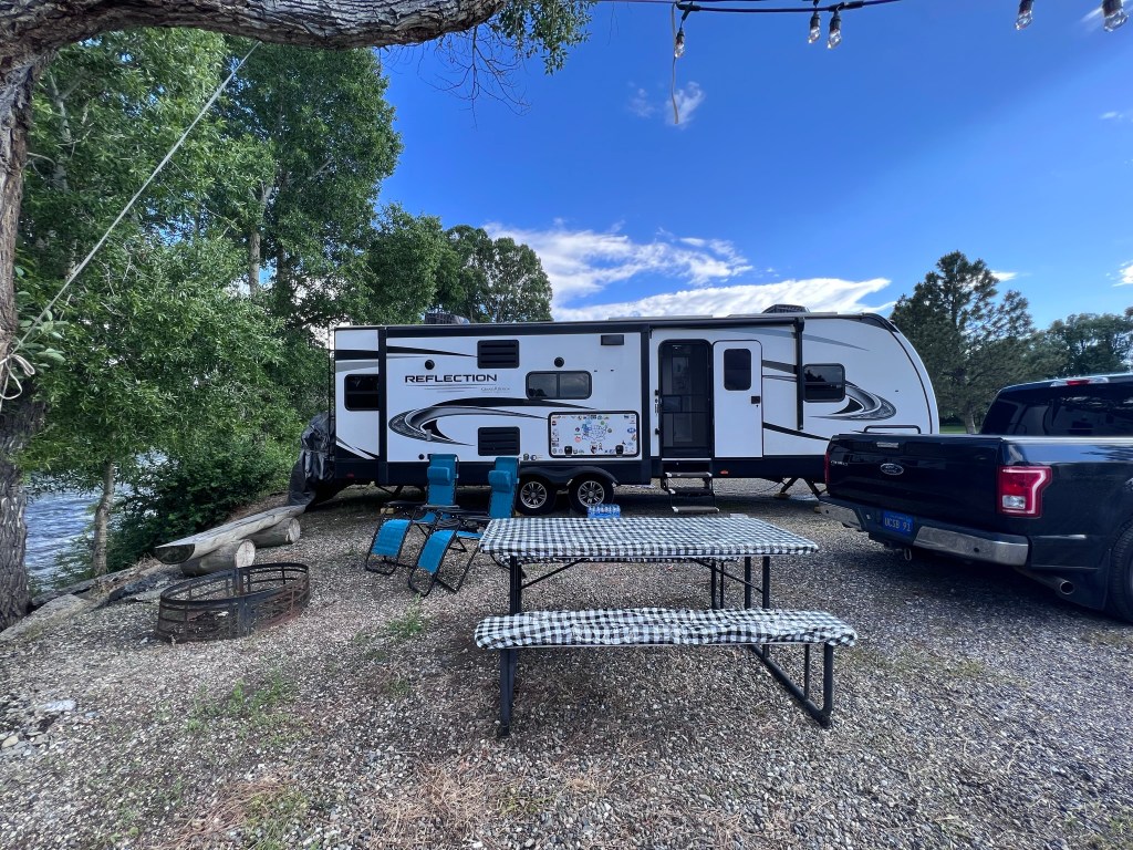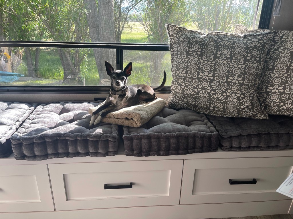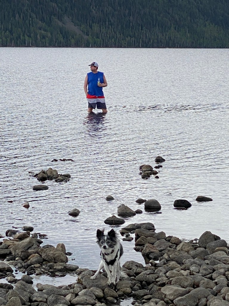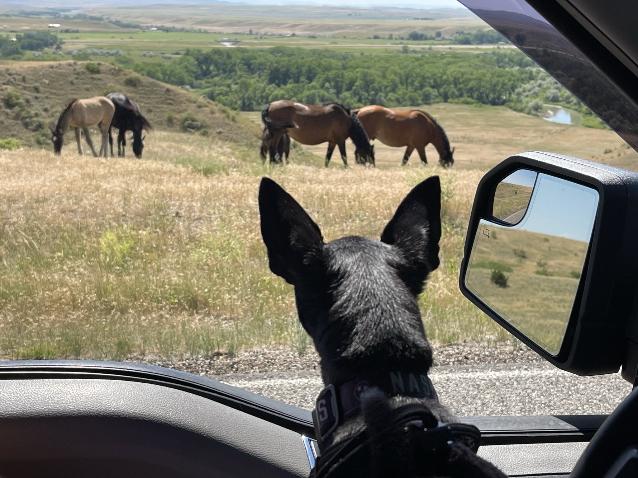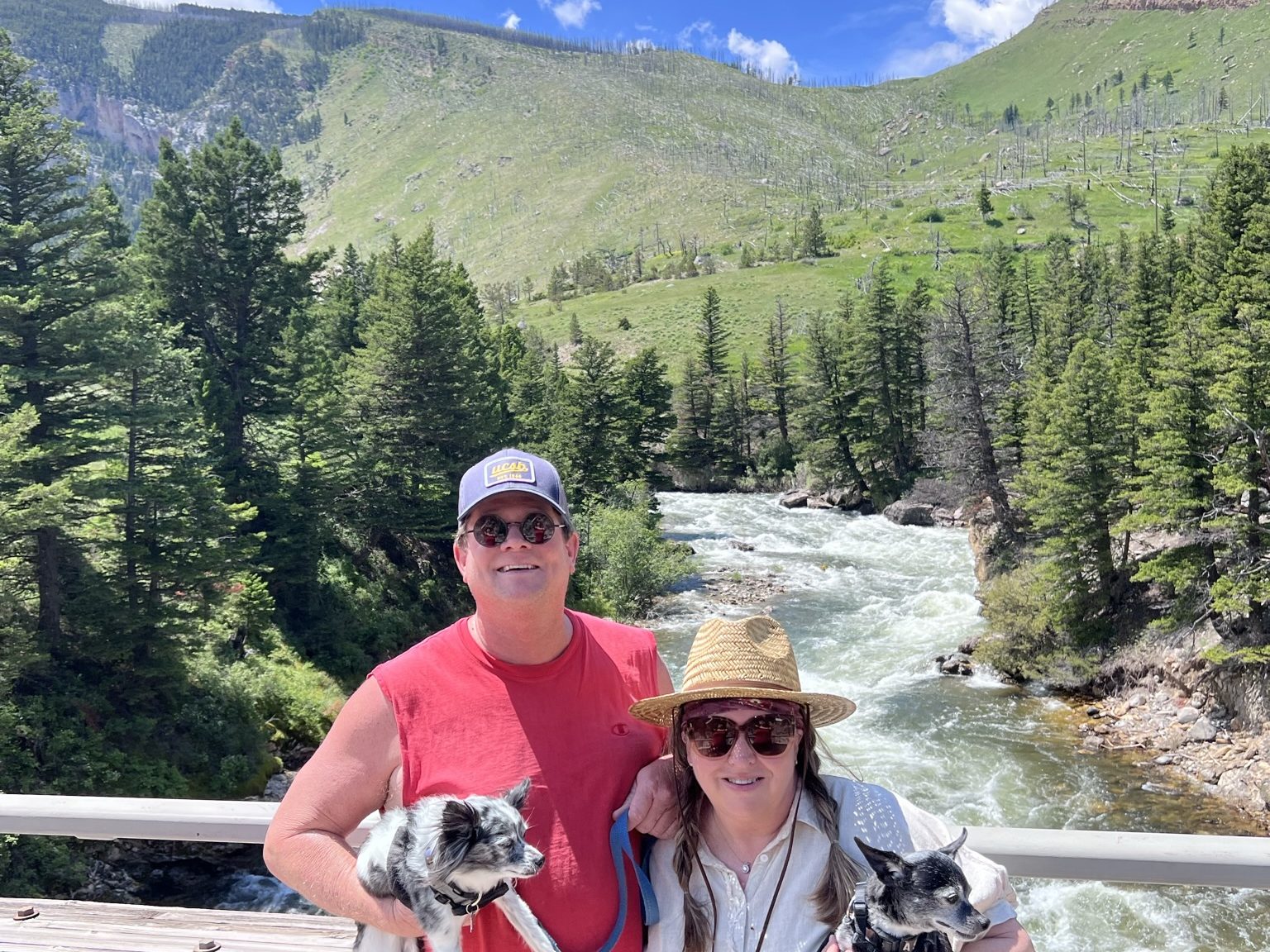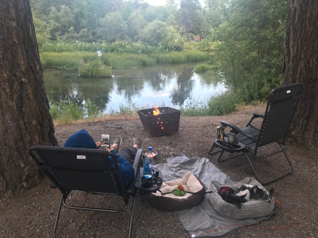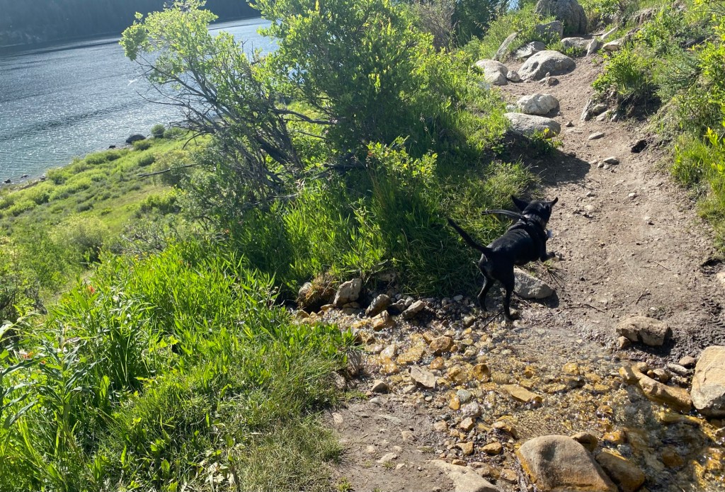 We arrived at Spring Creek CG & Trout Ranch, Montana, Saturday, June 24, at 4 pm. We had site 6 which was right along the Boulder River which ran south to north. Confused as to why they call it “Spring Creek CG” given that the river is called “Boulder”. Weird, but oh well. The town of Big Timber, a small town of 1700 people, is literally in the middle of nowhere and is the halfway point between Bozeman to the west and Billings to the east. The elevation here was 4091, lower elevation than Brigham City, however, we were way more north, so it got a little chilly at night which was perfect. The cool part was the river was literally about 10 feet behind our camper. Also, the river was raging. I’m no expert but I’d guess it was moving at about 15 miles per hour. So, the dogs had to be on a leash at all times because they could easily get swept away especially Kiki, the blind dog.