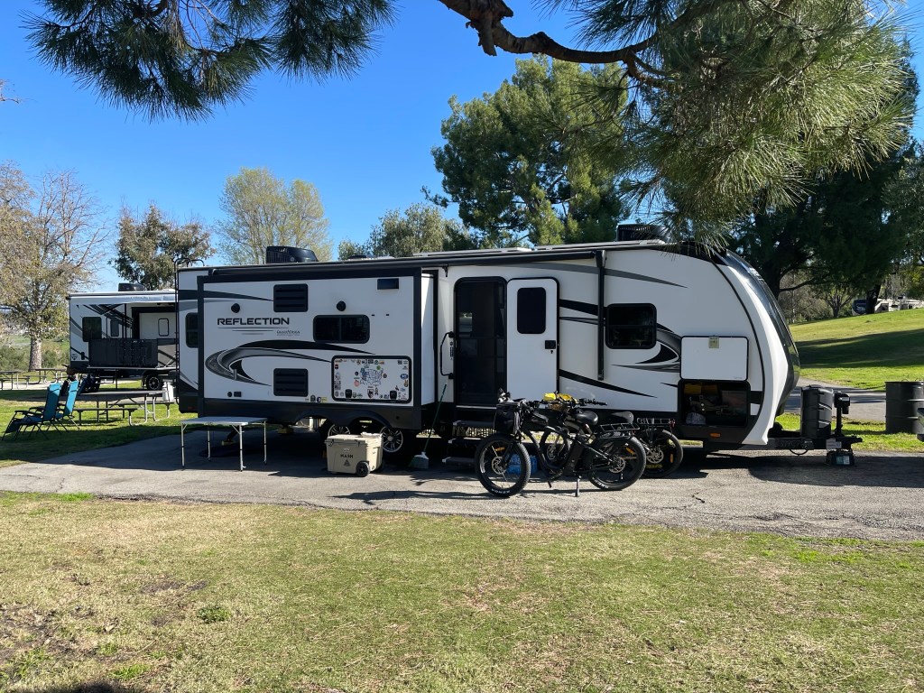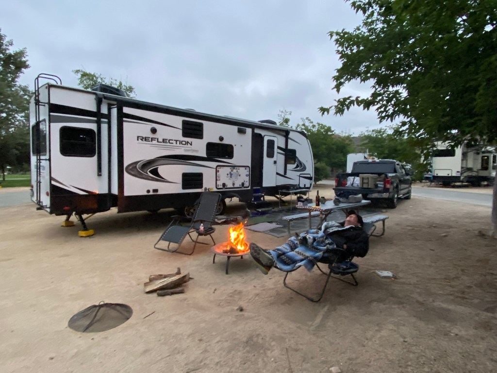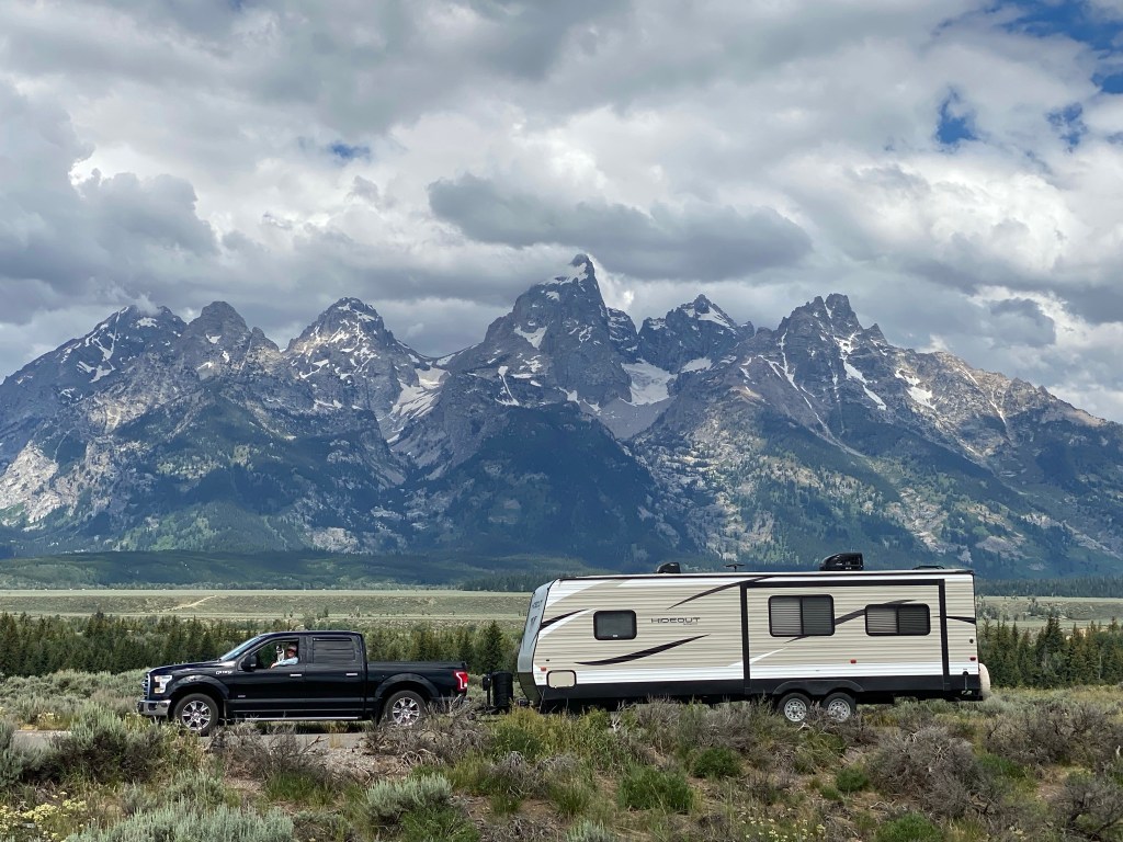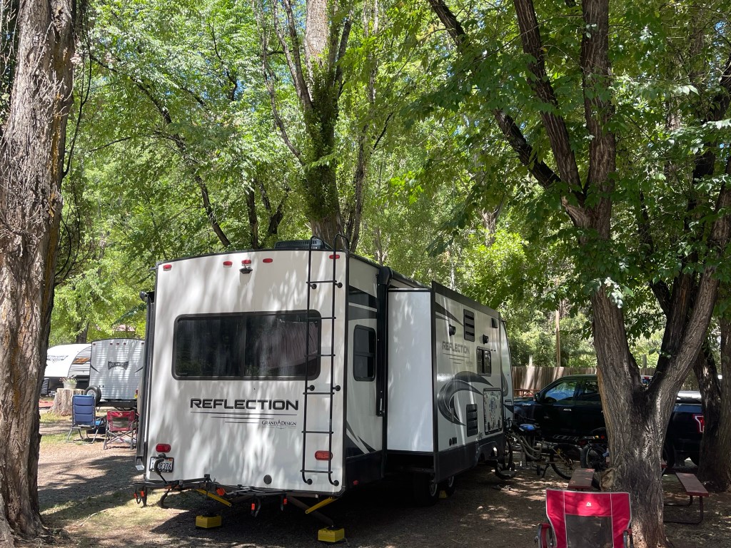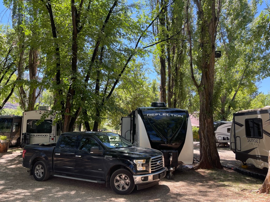“STOP!!!” my wife screamed. I slammed on my brakes even though I was only going 3 mph. It was 10 o’clock at night in Canyon Country, CA, where my folks live and where we store our 33 foot Grand Designs Reflection, travel trailer. The plan was to meet my wife with the dogs at my folks house Thursday night after work, finish packing for our 3 week trip, sleep a few hours and be on the road by 4 am. We had a little 762 mile car ride that first day which would put us at Brigham City/Perry South KOA, the very north end of the Great Salt Lake by 4 pm.