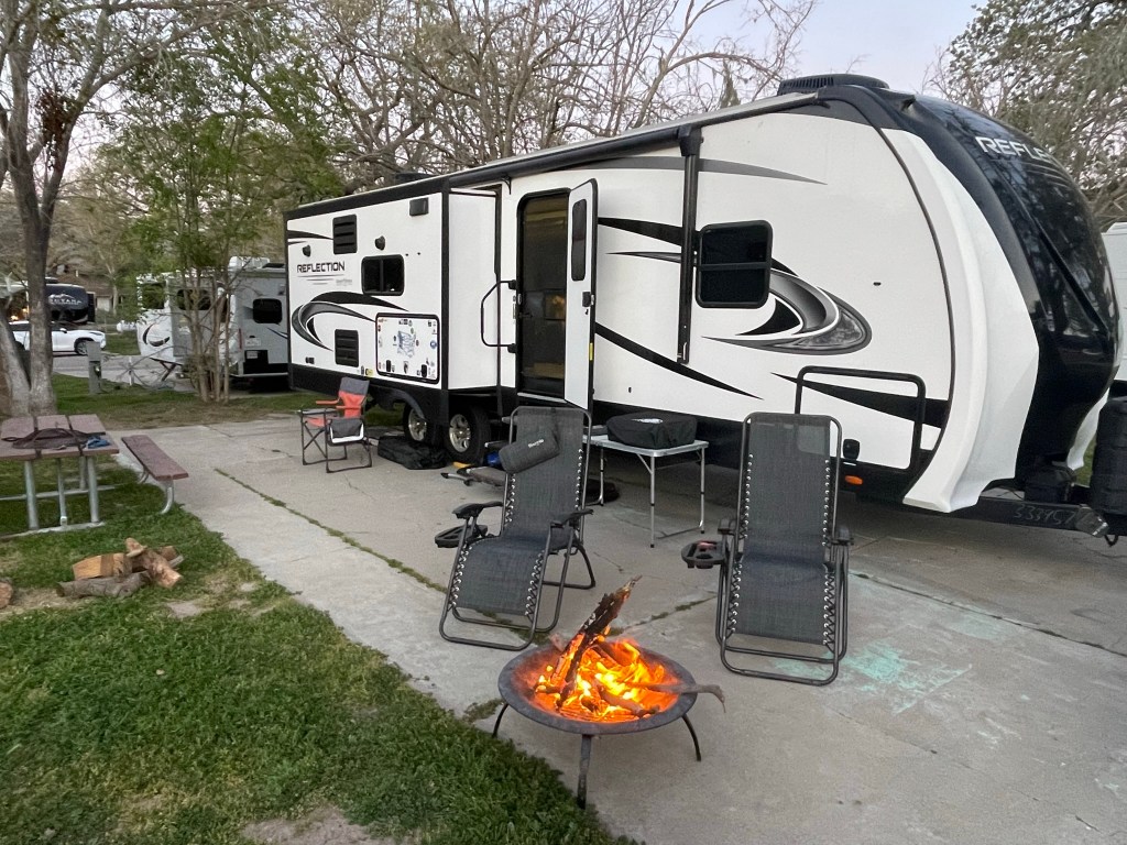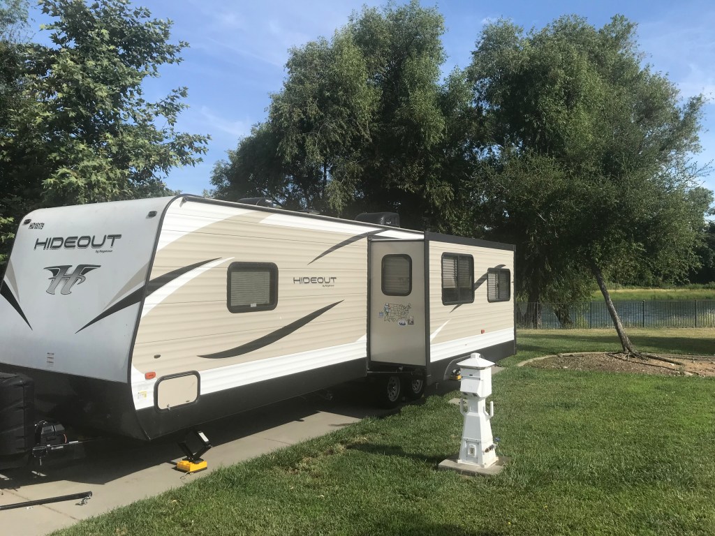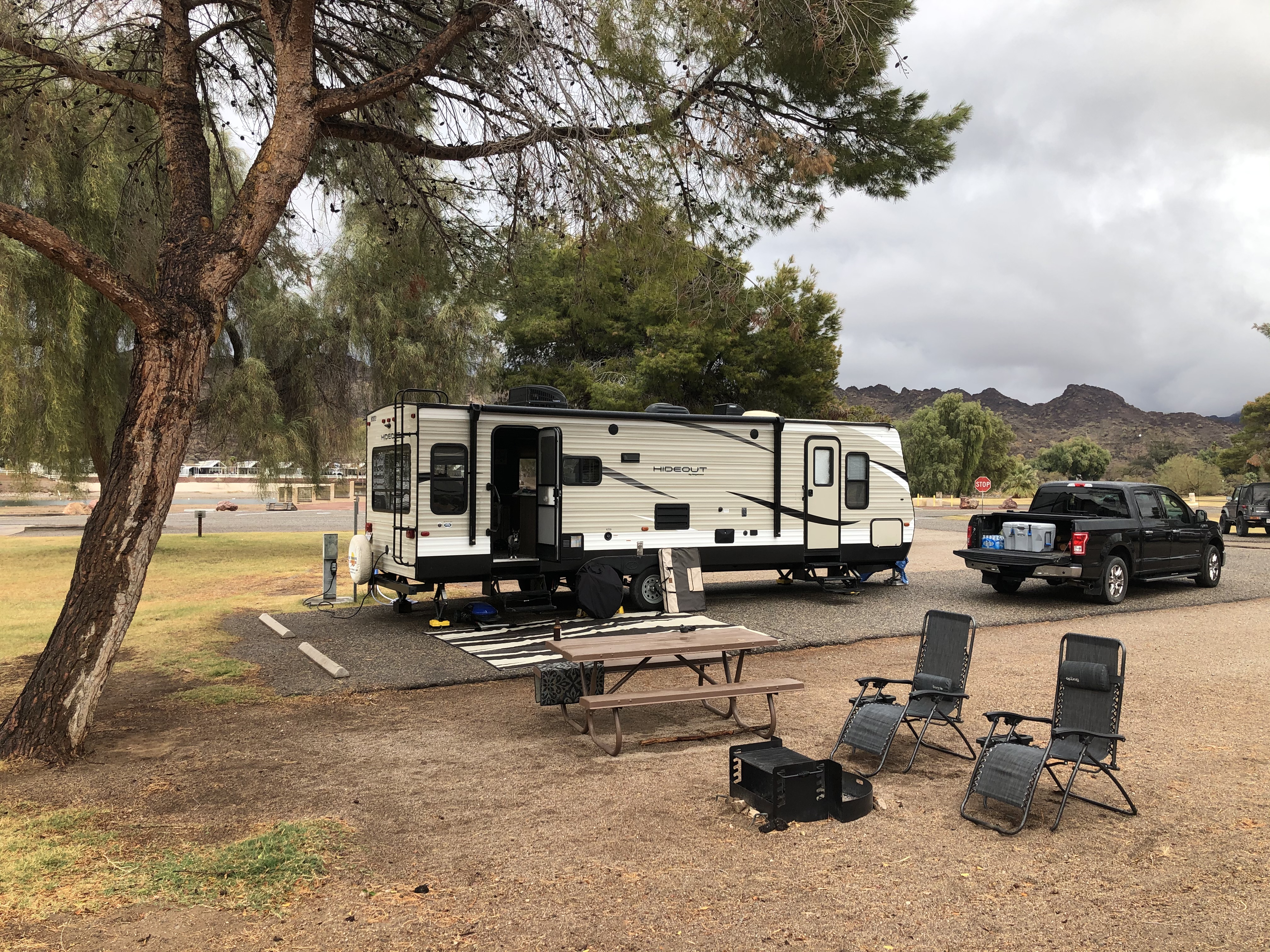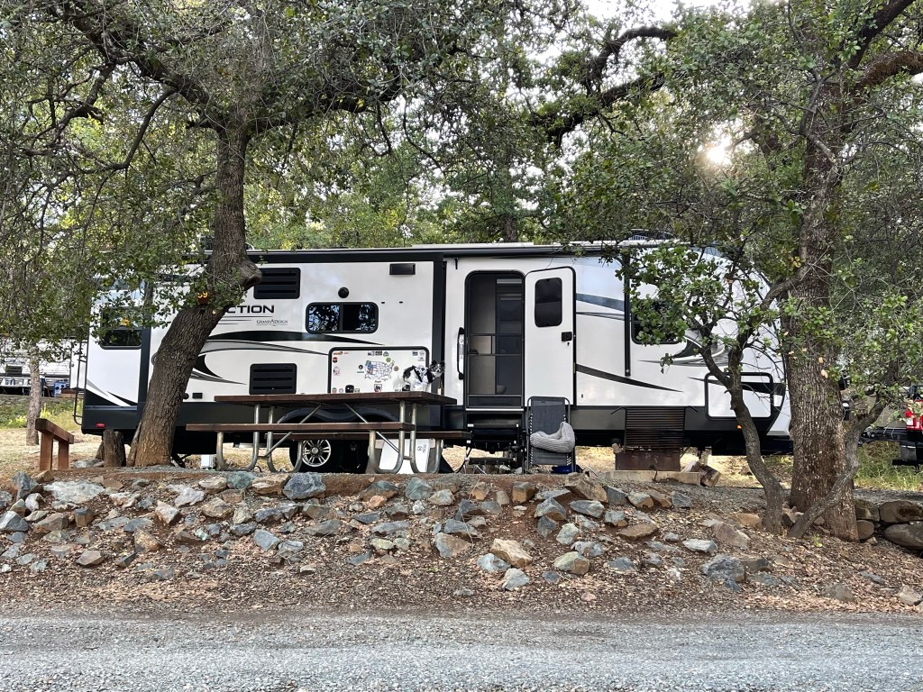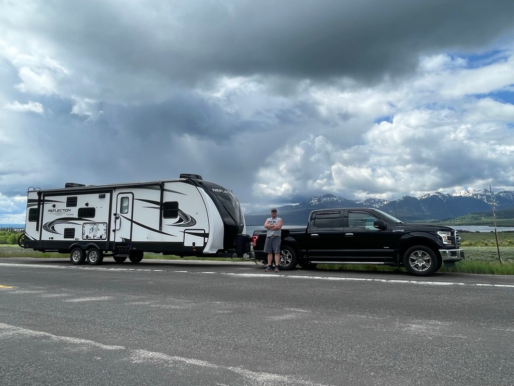 “STOP!!!” my wife screamed. I slammed on my brakes even though I was only going 3 mph. It was 10 o’clock at night in Canyon Country, CA, where my folks live and where we store our 33 foot Grand Designs Reflection, travel trailer. The plan was to meet my wife with the dogs at my folks house Thursday night after work, finish packing for our 3 week trip, sleep a few hours and be on the road by 4 am. We had a little 762 mile car ride that first day which would put us at Brigham City/Perry South KOA, the very north end of the Great Salt Lake by 4 pm.