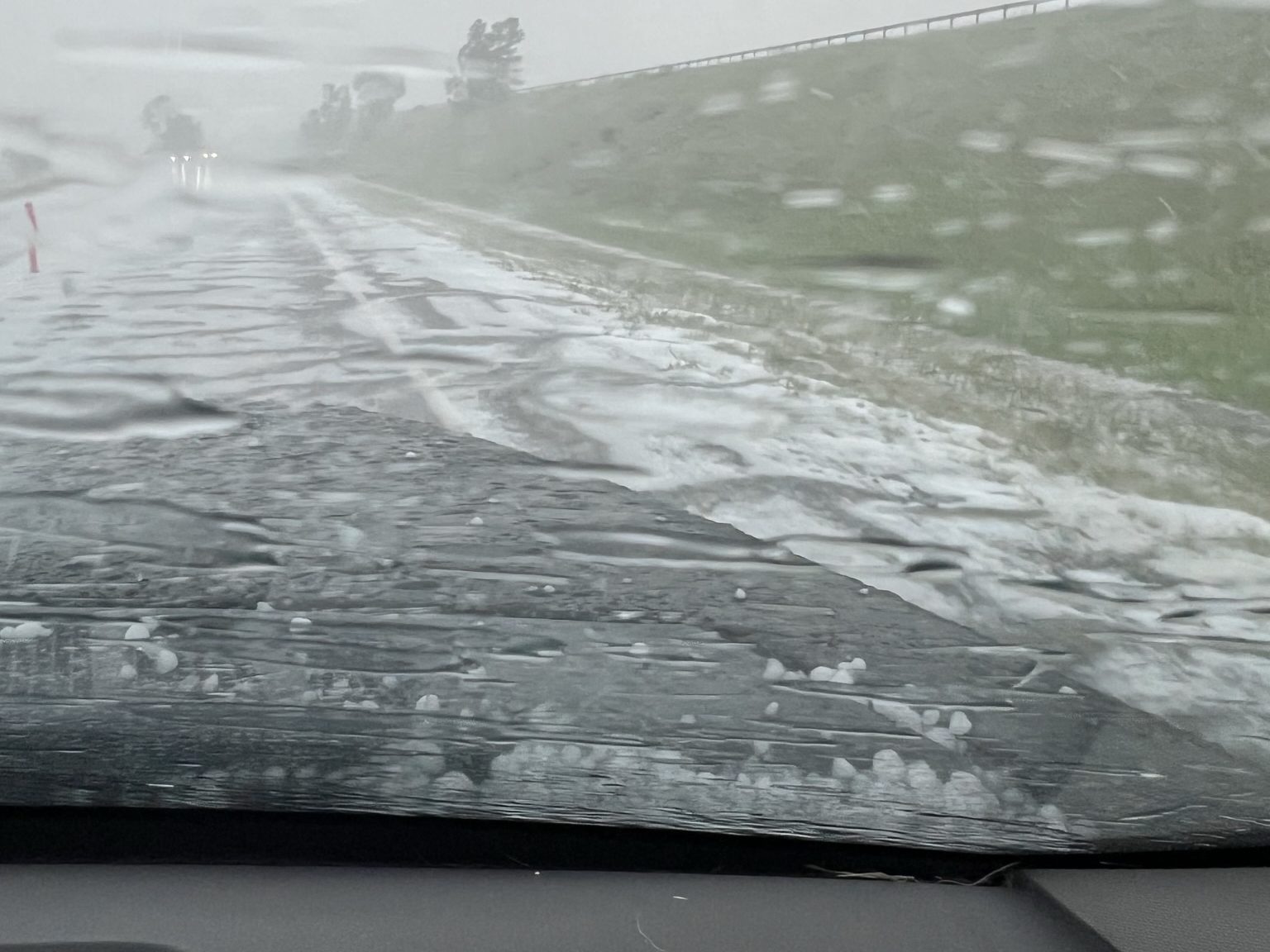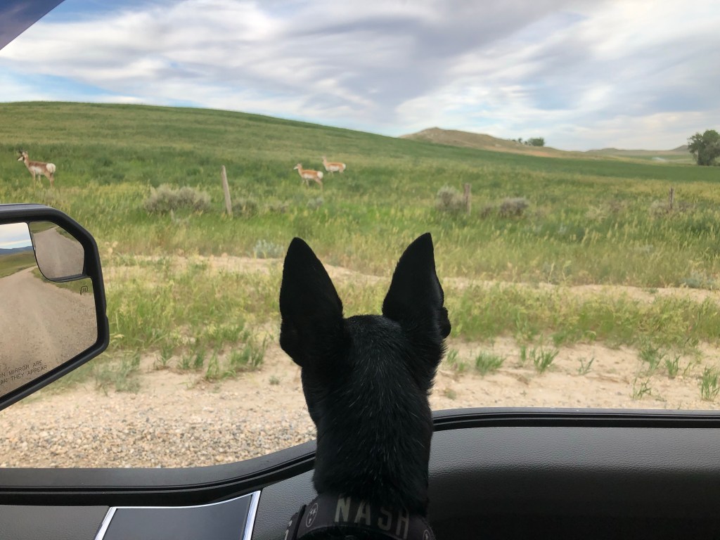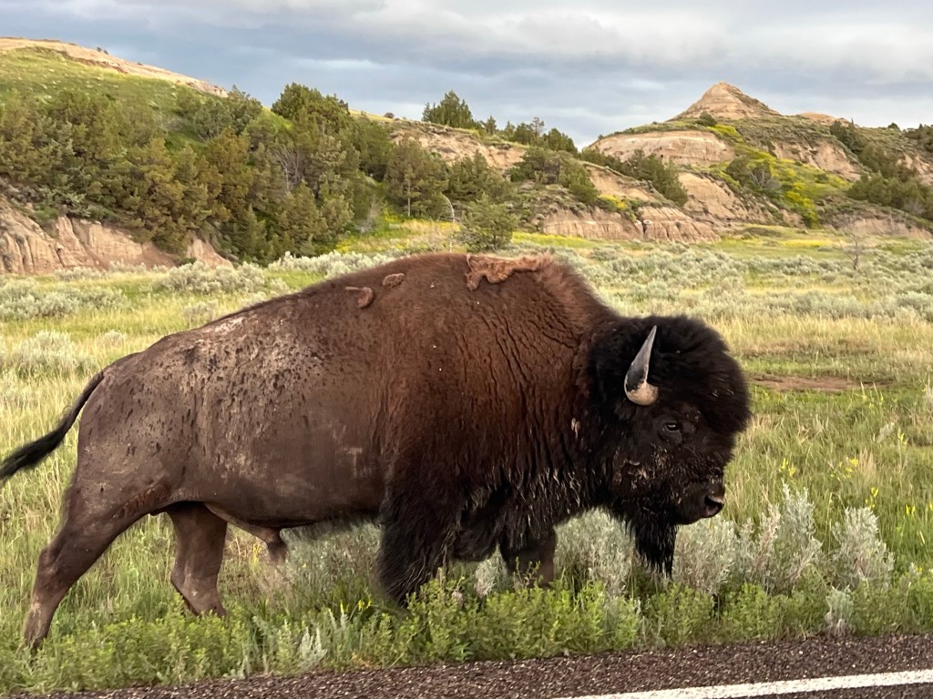 We woke up and hit the road by 9 am. We had 365 miles to cover, so roughly 6 hours of driving to Medora, North Dakota, to go see Theodore Roosevelt National Park or TRNP. This drive was beautiful as well, however, until we got about 30 miles east of Miles City, MT, on interstate 94. As soon as we drove through Miles City, you could see this huge black cloud waiting for us. We were expecting a good rain but what we got was an insane hail storm and I’m talking end of the world shit. The first five minutes, we were like “cool” then the hail got bigger, some the size of golf balls, then the hail came down harder and harder. It sounded like it was going to break through the windshield. It wasn’t cool anymore. Absolutely crazy.