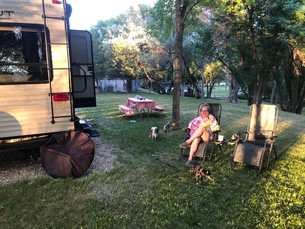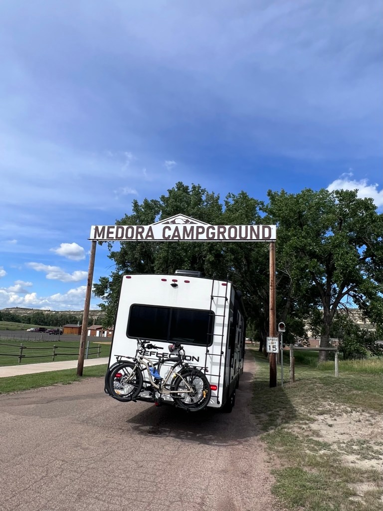 We got to Medora CG around 5 pm and set up at site 704. Full hook ups, pretty clean site but no fires which sucked.