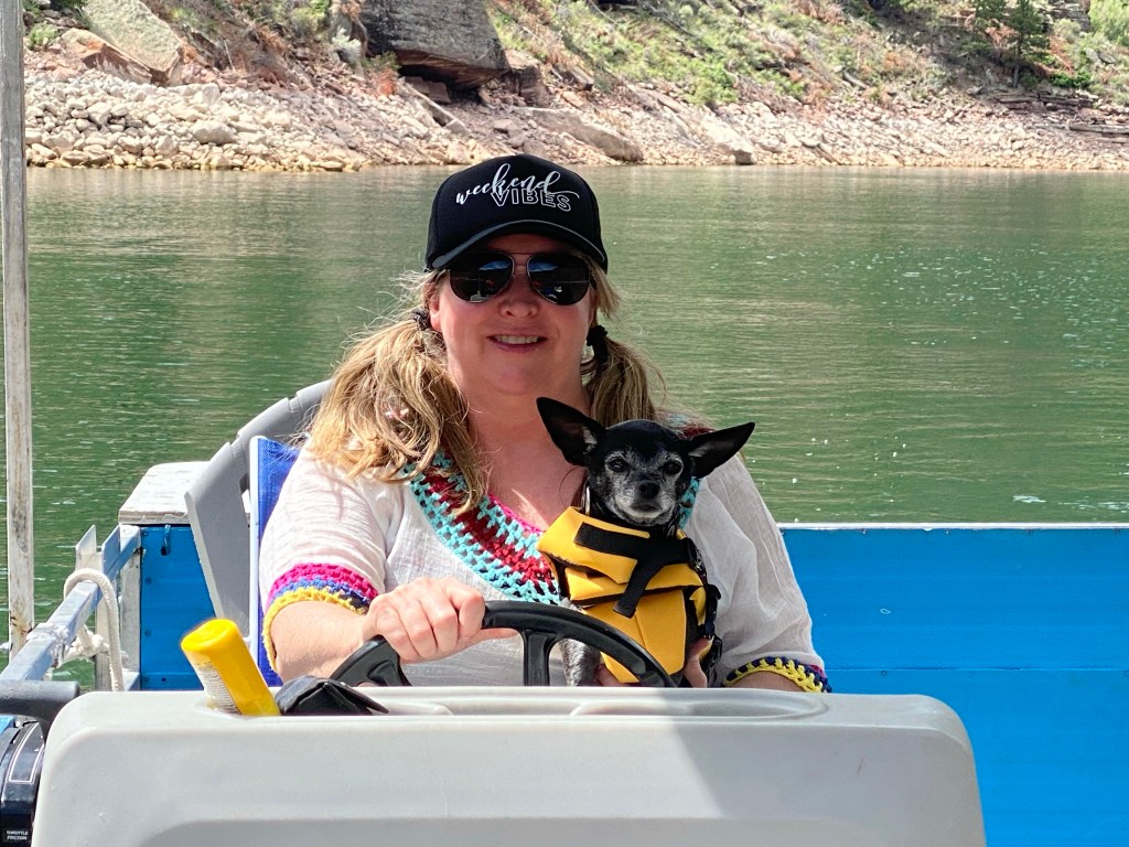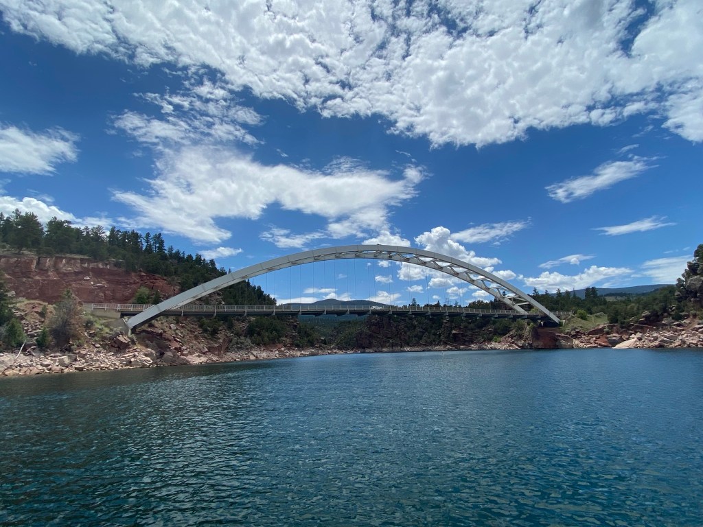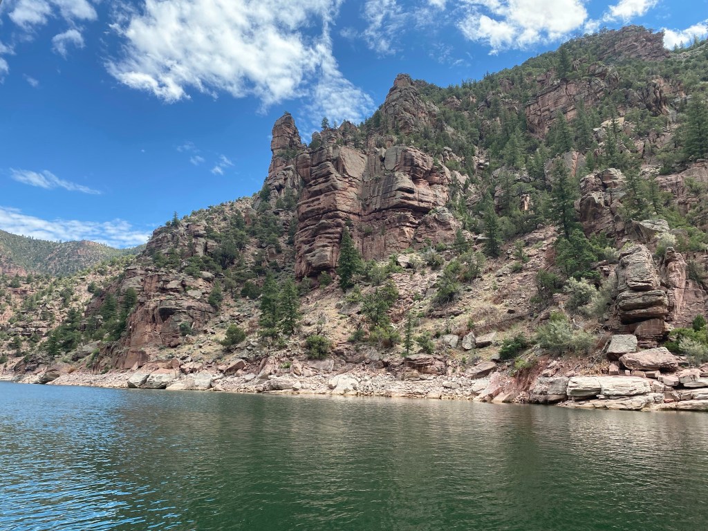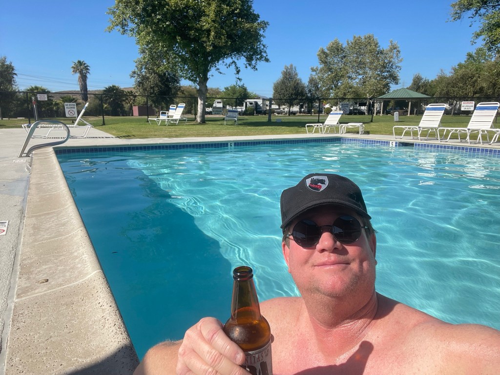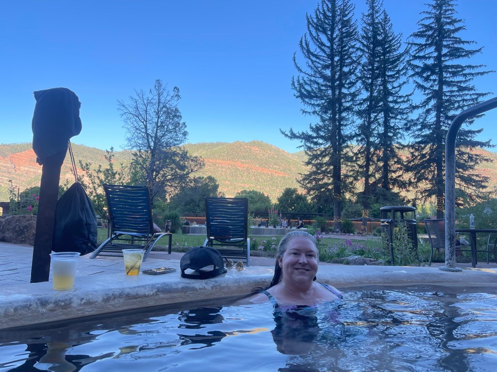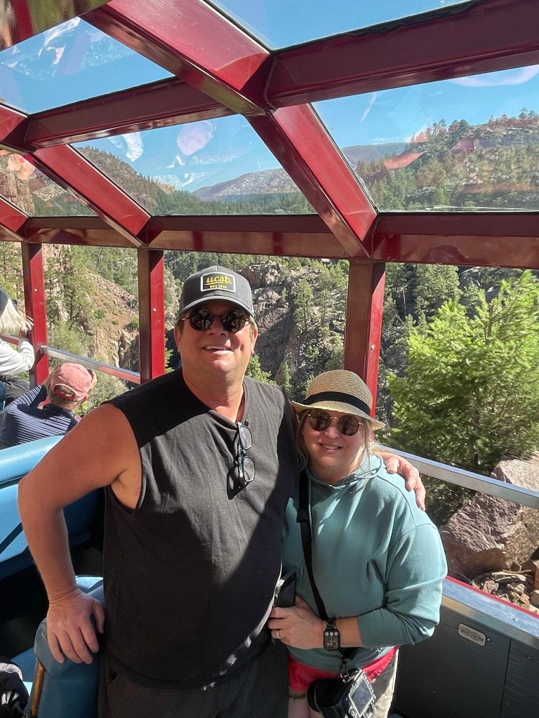 The next day we left at 8 am and drove 361 miles for about 7 hours. This part of our trip was up and over the Rockies, so the truck crawled over some parts. Still, it was beautiful scenery for the most part. We got to Alpen Rose RV Park just north, outside of Durango, CO, at 5 pm, set up camp and hit the above ground pool to cool off.