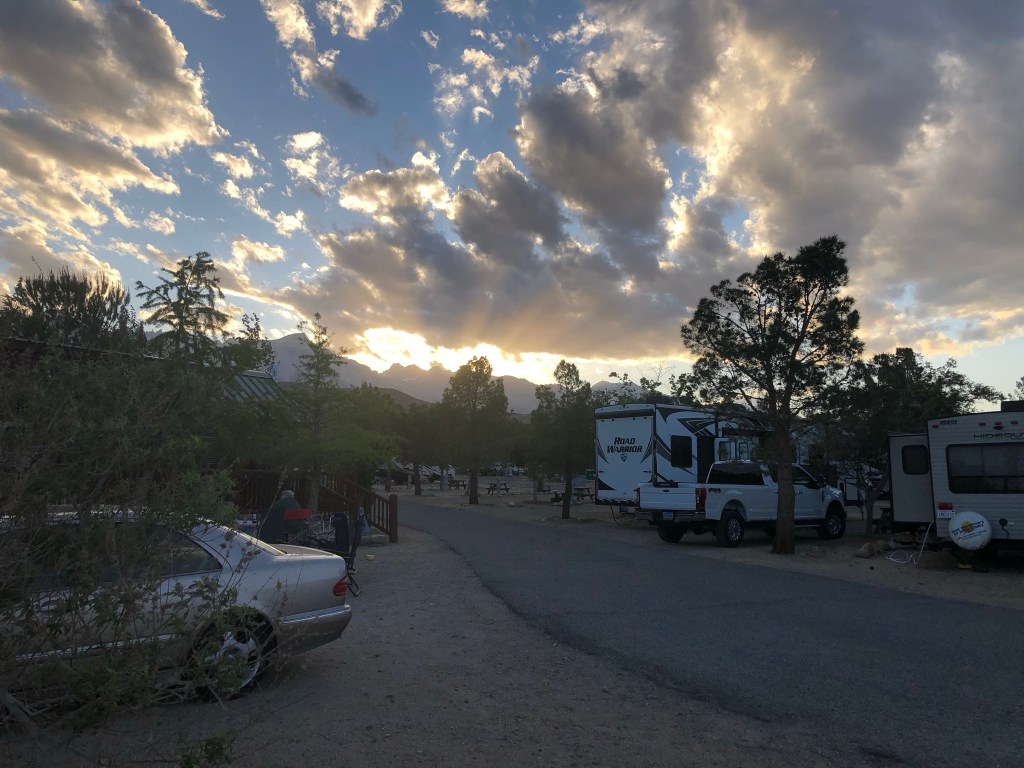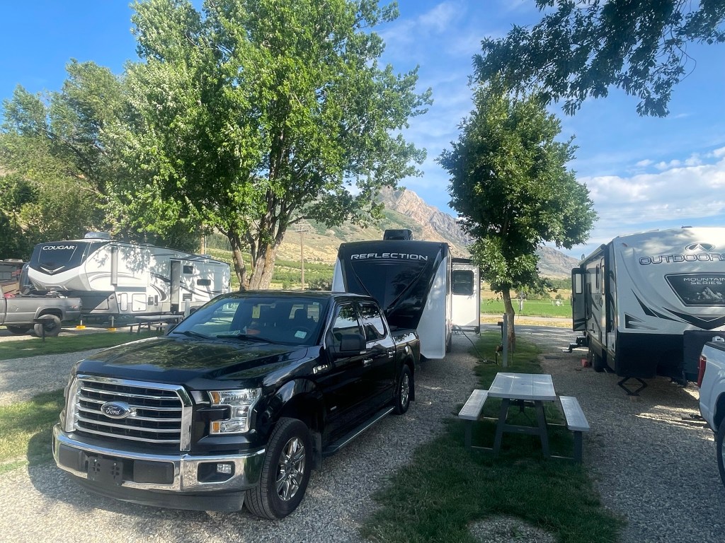 Therefore, we left and drove about 3 and half hours and stopped at a rest stop about an hour past Baker, CA, at 2:30 am. We slept in the trailer because we can access that without opening the slide outs. However, we still did not have functional CPAPs, but we were so exhausted, we managed a few hours of uncomfortable sleep. We pushed on with our marathon first day of driving. Lisa called the campground, Brigham City / Perry South KOA, and found out they recommended a local repair guy who repaired RVs. So we had this guy waiting for us and when we arrived at 5 pm, he had purchased a new electric cable ahead of time, just in case, and told us that the socket was fine. He was also kind enough to knock of the $75 fee just for showing up becuase he had another repair job to do onsite and ours turned out to be an easy fix.