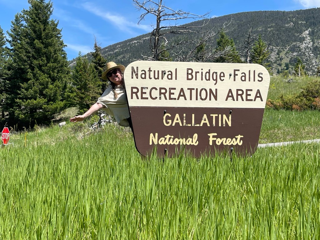 Our second day at Spring Creek CG, we drove 30 miles south to check out the Natural Bridge Falls. Constrained by a deeply cut chasm during high water, the Boulder River, the same one behind our campsite, flows over a 100-foot precipice, creating the spectacular Natural Bridge Falls. At low water, the river used to flow under a natural rock bridge, but in July 1988, the bridge that gave the area its name, collapsed.