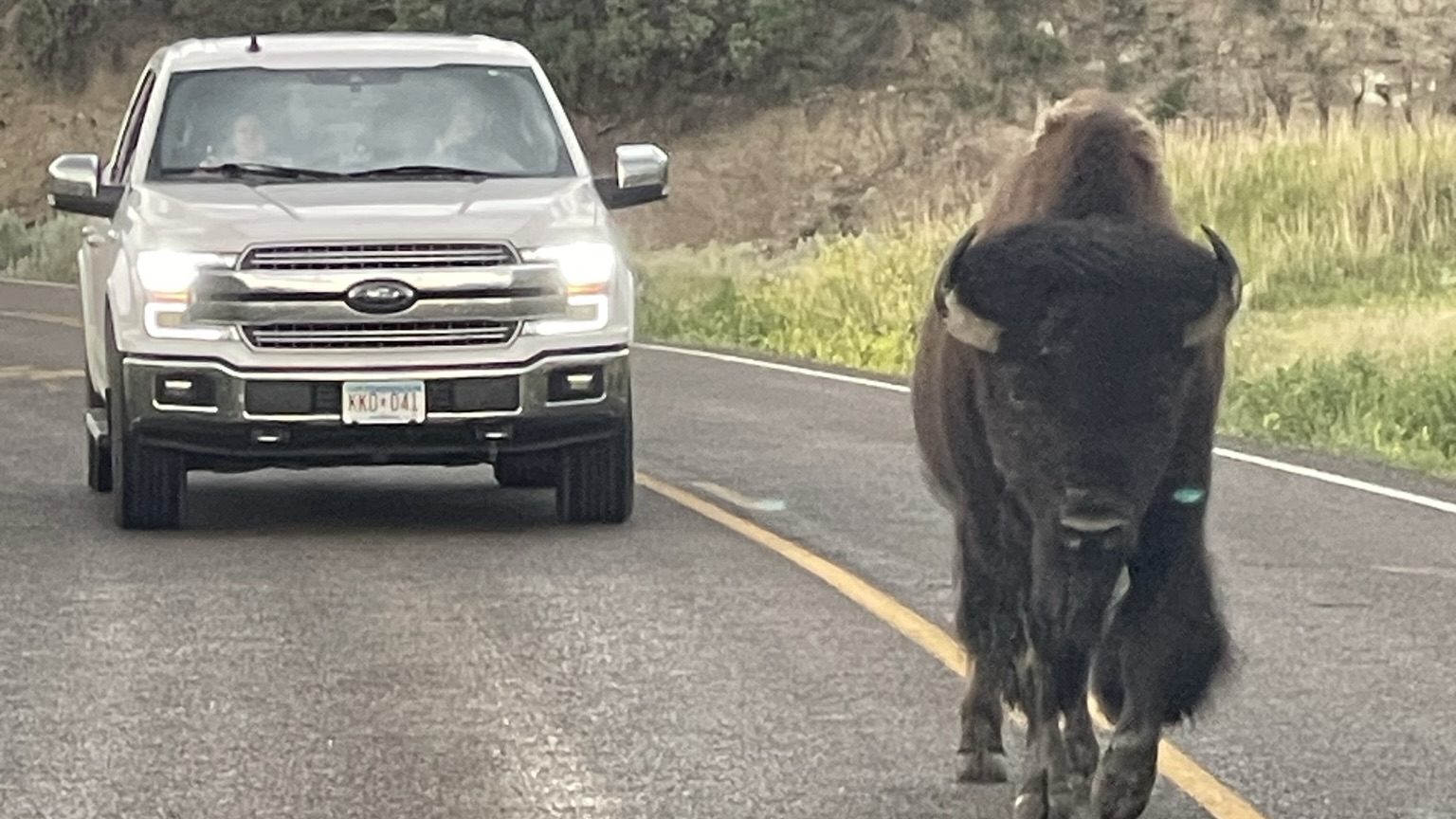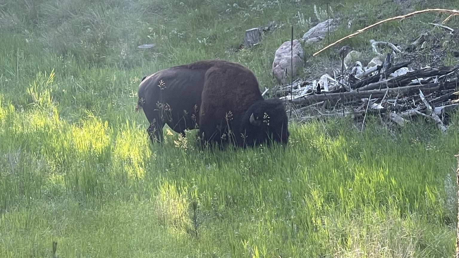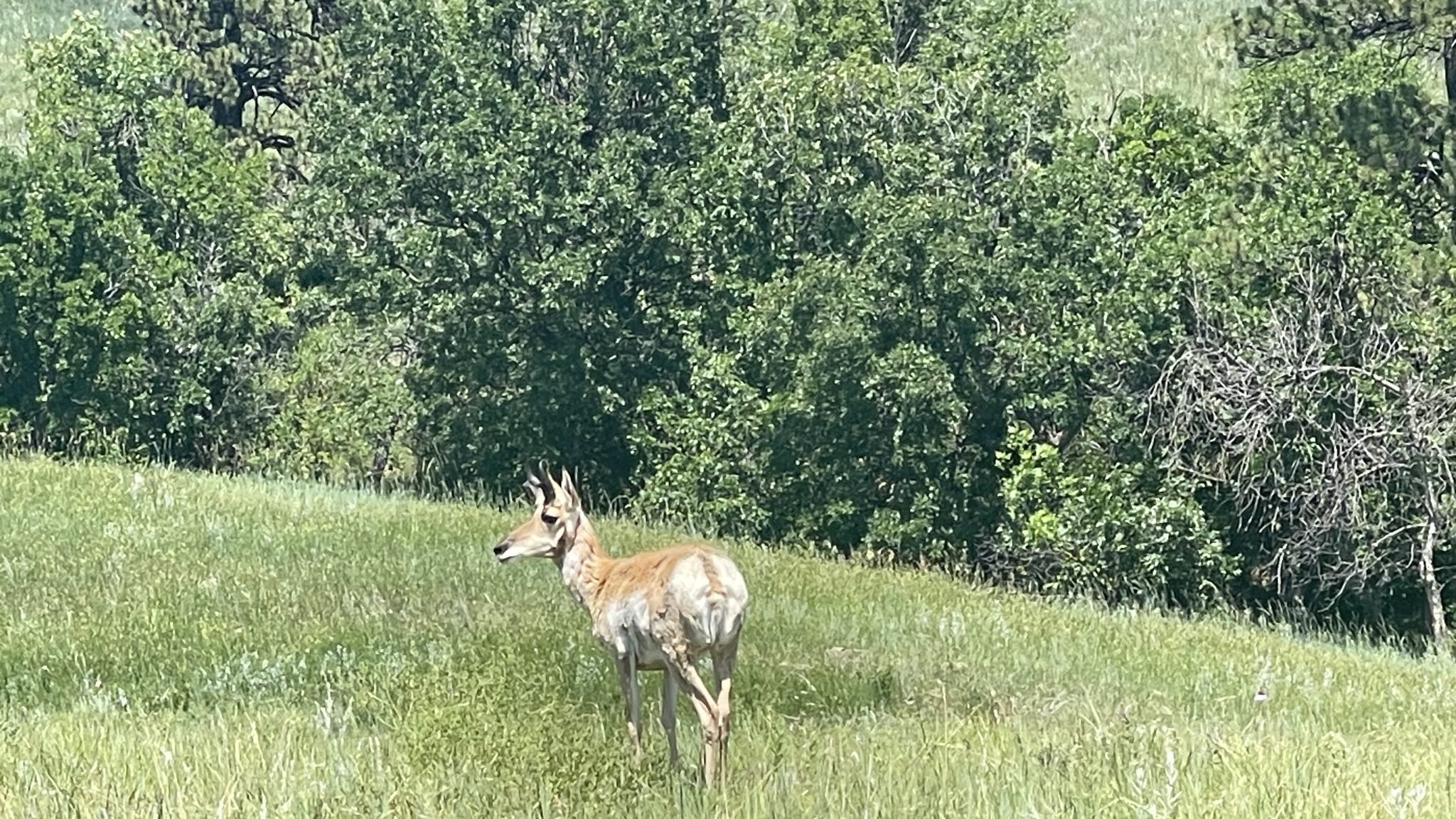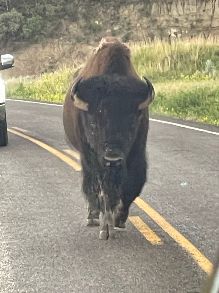 We spent another day exploring the so called Wildlife Loop which was taking the 16A east to the 87 going south and looping counter-clockwise back to the 16A west. Here we got into a natural traffic jam which was exactly what we were hoping for. Small 2 lane highway road stopped by a herd of buffalo. We also saw a mountain goat and wild burros. This was the thing we were dreaming about when we were planning this trip months before.