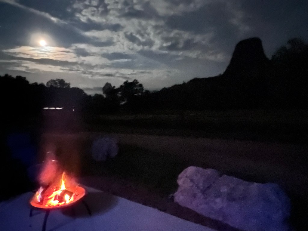 For those that don’t know or aren’t old enough, in 1977, Steven Speilberg did a movie called “Close Encounters of the Third Kind”. It did well, but because it came out the same summer as “Star Wars”, it was not the hit they were expecting. In the movie, aliens make contact with the US government at the base of the Devils Tower which made this monument way more famous. Another cool part of staying at this KOA, is that they play the movie every night in the summer at 8 pm outside the cafe. So as a group, we brought some adult sippy cups and blankets and watched the movie with the Devils Tower looming in the background. Like most 70’s movies, it’s a bit slow with average special effects, compared with today’s standards, so the young people got a bit bored. Anyone over 50, it was quite the nostalgia moment.