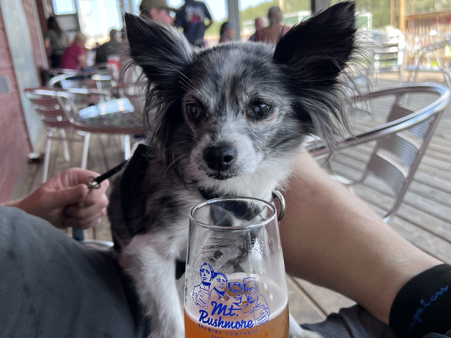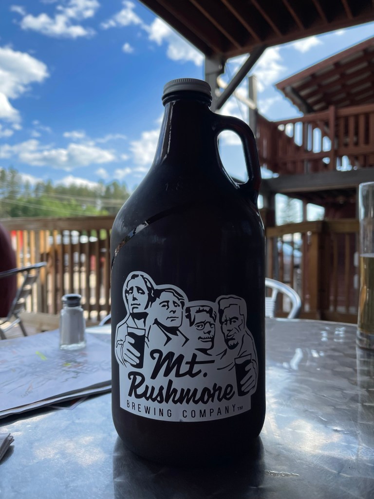 We got to the CG around 2 pm, set up camp, and then decided to go check out the town of Custer. We found a brewery called Mt. Rushmore Brewery which was fantastic. Great brews, good food, and a killer ambiance. I had a beer called “Rutherford B. Haze” which is a take off of our 19th president, Rutherford B. Hayes. It was an IPA which is my go-to and it was quite tasty. Infact, it was so good, I ended up getting a full growler of it in a really cool label.
