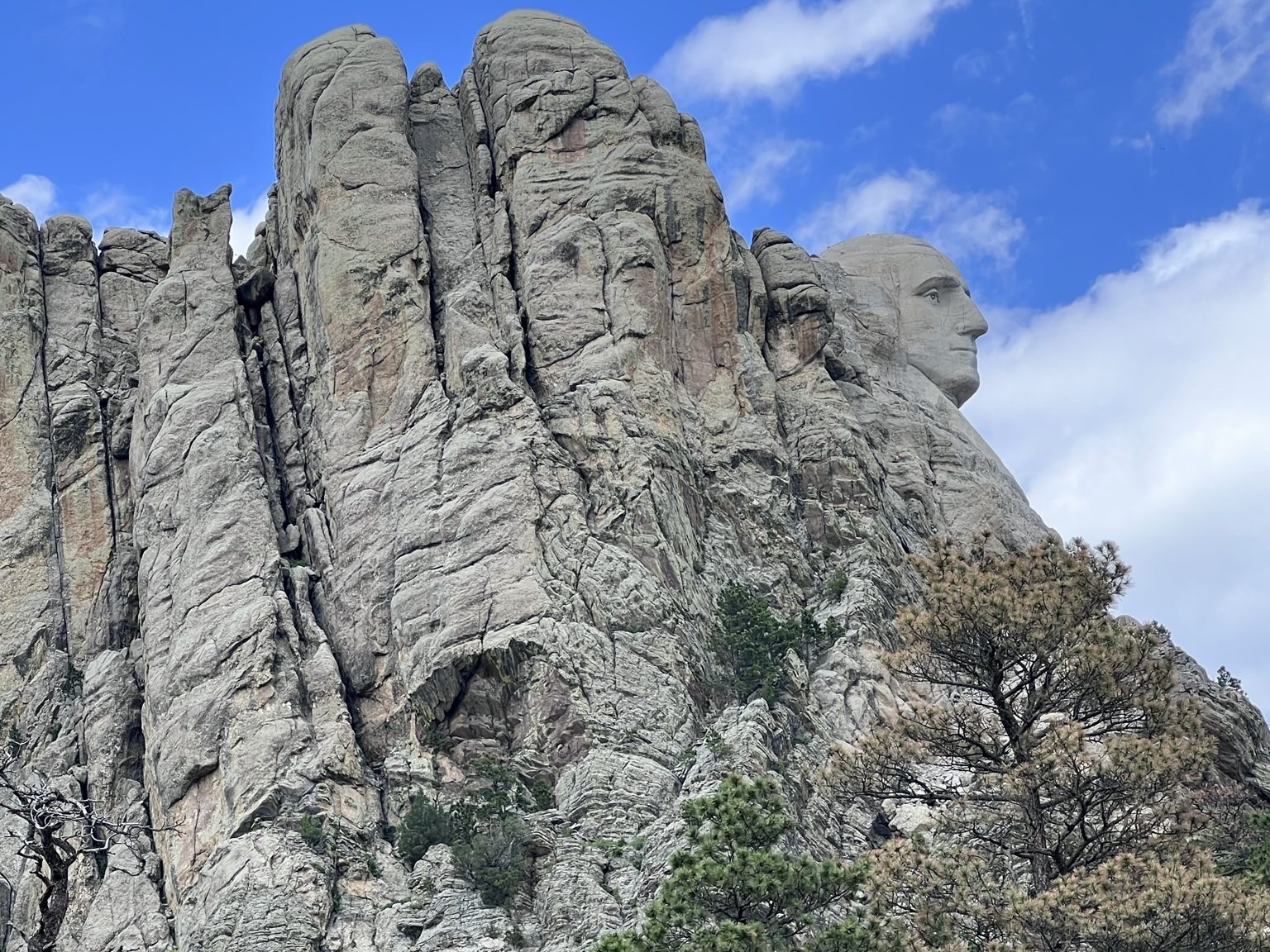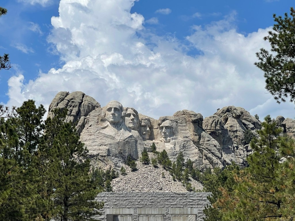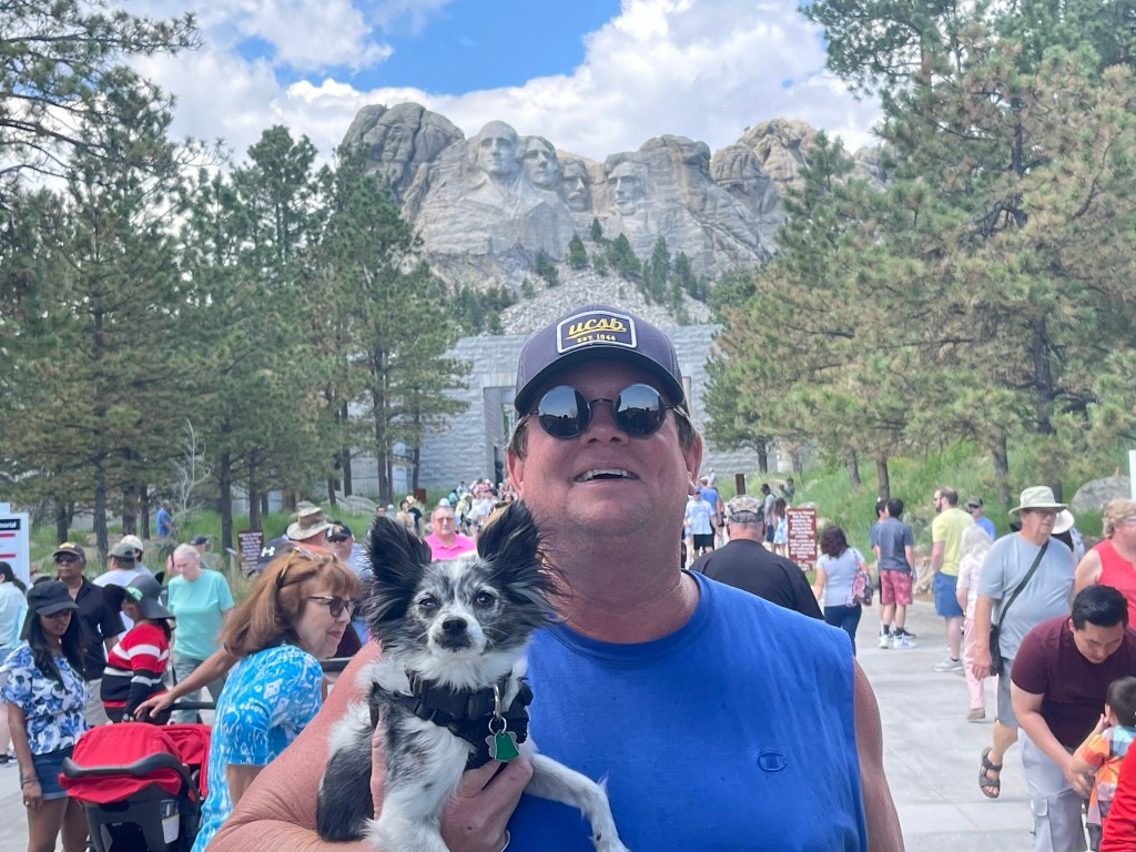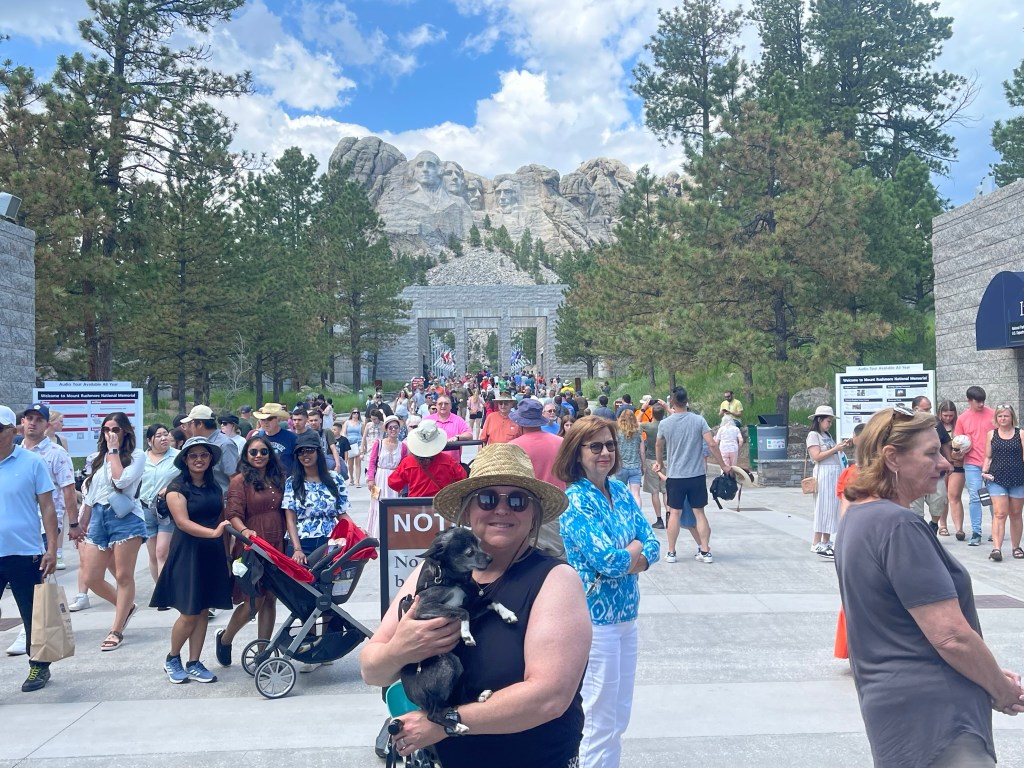 So, we were hoping to see the same kind of show, however, the rangers told us that they stopped doing the fireworks off the heads after 2008. He said we were incredibly lucky to have seen that. Apparently, they stopped because too much leftovers from the fireworks would be all over the National Park and the animals were eating the stuff, so they stopped. Therefore, we got to visit Mt. Rushmore but no fireworks. There were quite a few clouds strolling by so we had the opportunity to get pics where the sun highlighted the heads and some pics without. Kiki and Tuxedo also got to be “Bark Rangers”.