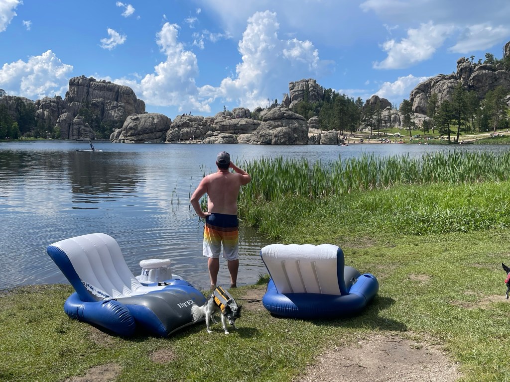 We spent another day grabbing our floats and chilling on Sylvan Lake, a gorgeous lake with rocks surrounding half the border. We had to wait out a thunder shower, but soon we got out on the lake with our cocktails and floated around.
