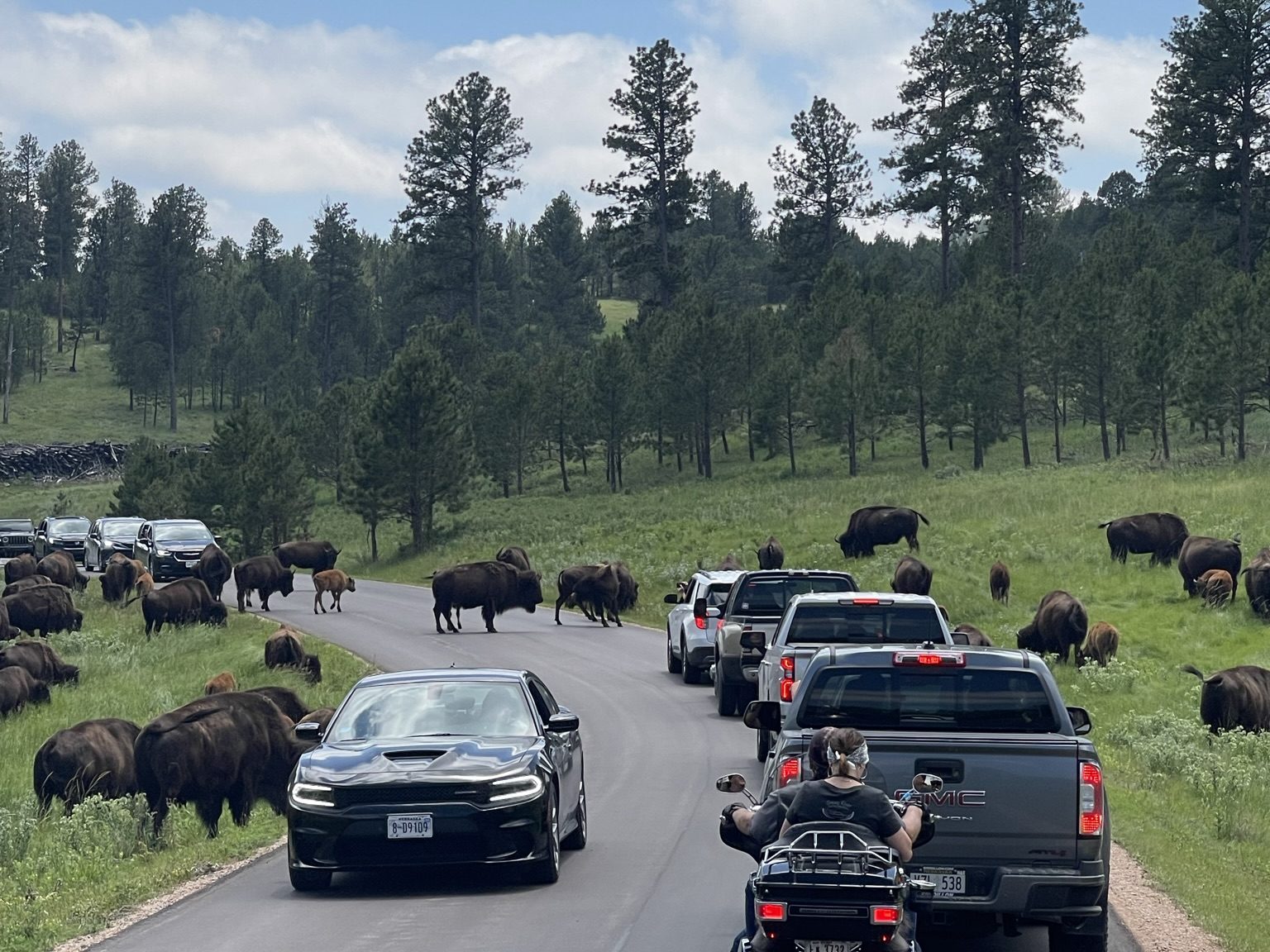 After spending 2 and a half days at Devils Tower, which was awesome, we got up and slowly headed out towards Custer, South Dakota. It was only 116 miles and a 2 hour drive, so we took our time packing up. Ed and Marcie headed back to Vegas, and Rob and his family headed back to Colorado Springs. Now, we had 5 nights planned at Custer. The Custer State Park is 30 minutes from Mt. Rushmore and had a few highway loops where you can spot a lot of wildlife, mainly buffalo herds which is why we came here. We’d been to Mt. Rushmore 15 years before, but we were excited to see it again. We stayed at Big Pine Campground which was 2 miles west out of town. The CG was ok but not as cool as we were expecting. After driving around town, we realized the place to camp is Buffalo Ridge Camp Resort. It’s closer to town, but it has all the amenities like a pool, jacuzzi, fancy camp store, but the really cool part is that the CG sits on the top of a small hill with great views. It looked very new and God knows what the price is, but we would definitely stay there next time. Big Pine was fine, but it was old school. No pool, pretty wooded with not much views and dusty roads.